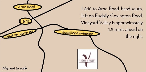 Vineyard Valley is located in picturesque College Grove, TN, just off of Arno Road on Eudailey-Covington Road. With easy access to I-840, you'll enjoy the serenity of rural living and the convenience of being in close proximity to Franklin, Cool Springs, Nolensville, Murfreesboro and downtown Nashville.